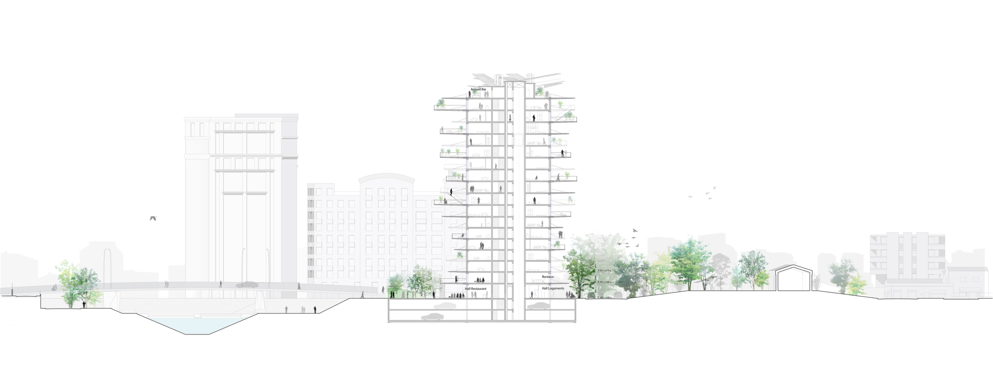 L'Arbre Blanc, cette nouvelle tour multi-programmatique (logements, restaurant, galerie d'art, bureaux, bar panoramique, espace partagé), fait l'objet d'un attachement tout particulier aux qualités du « vivre dehors ».