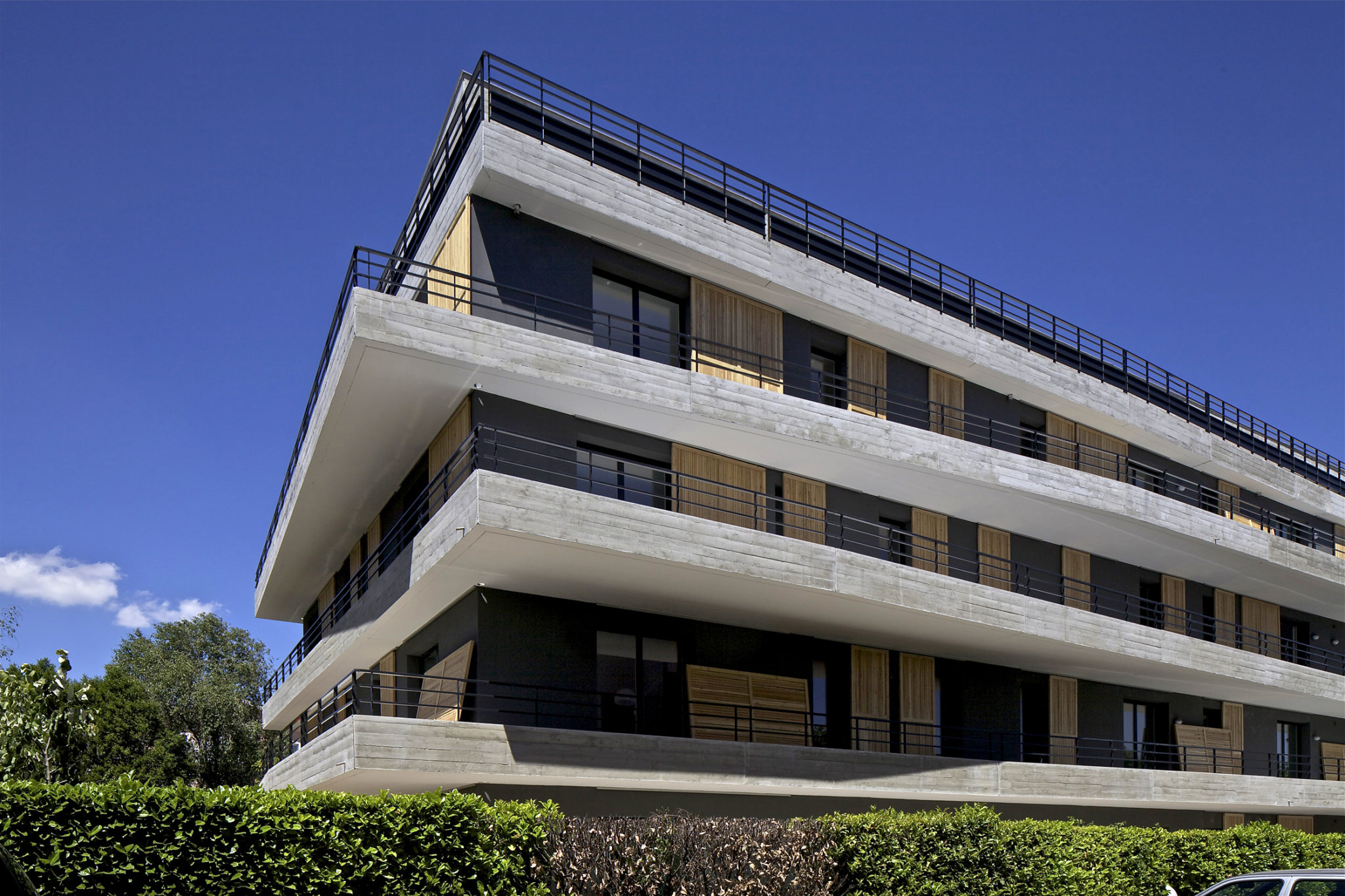 Les balcons présents sur toutes les façades se décalent d’un étage à l’autre afin qu’à tous les étages chacun puisse profiter du ciel. Les appartements en majorité à double orientation profitent de vues dégagées sur le panorama Toulousain.