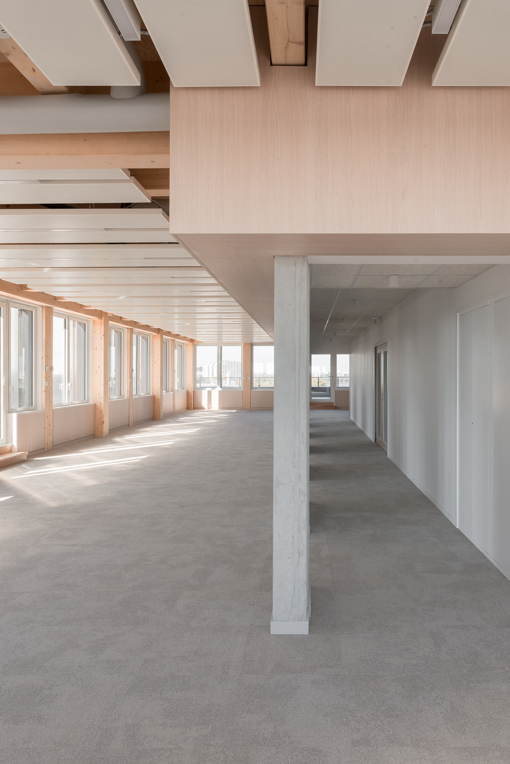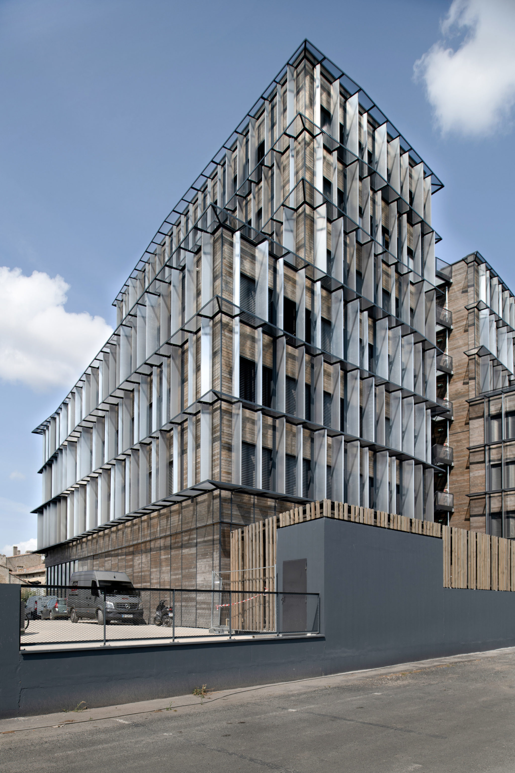 Première opération s’inscrivant dans la démarche de construction bois par l’EPA Bordeaux-Euratlantique, ce programme tertiaire est emblématique de la filière bois nationale. C’est l’un des premiers du genre en France ayant une performance thermique positive. Le projet maximise le recours à la ressource locale du bois ainsi que l’utilisation de matériaux régionaux et renouvelables. Il présente une structure poteaux-poutre en bois lamellée collée, en Pin des Landes, agrémentée d’un bardage en Epicéa du Limousin.