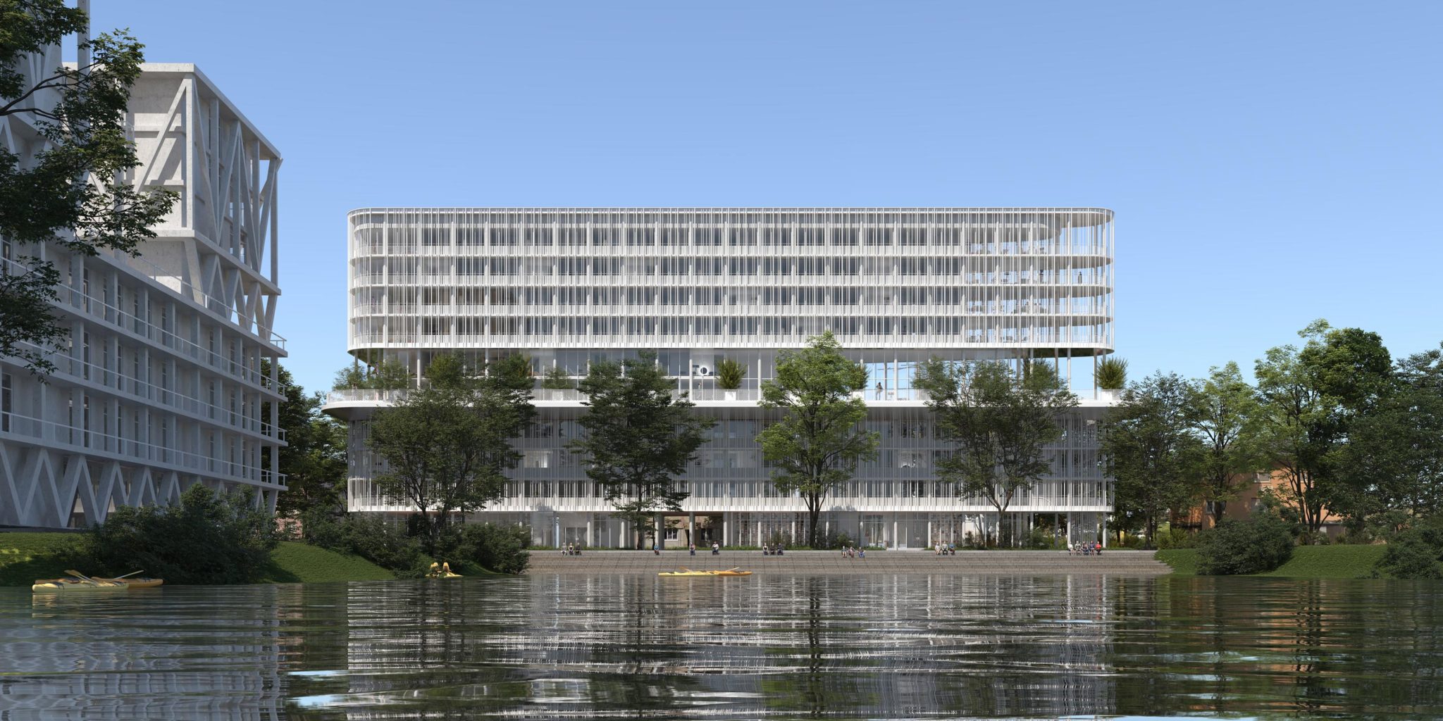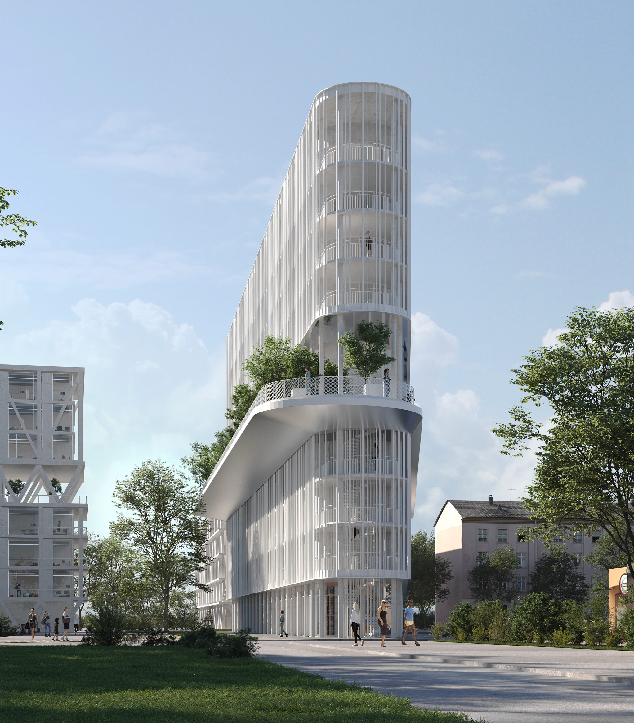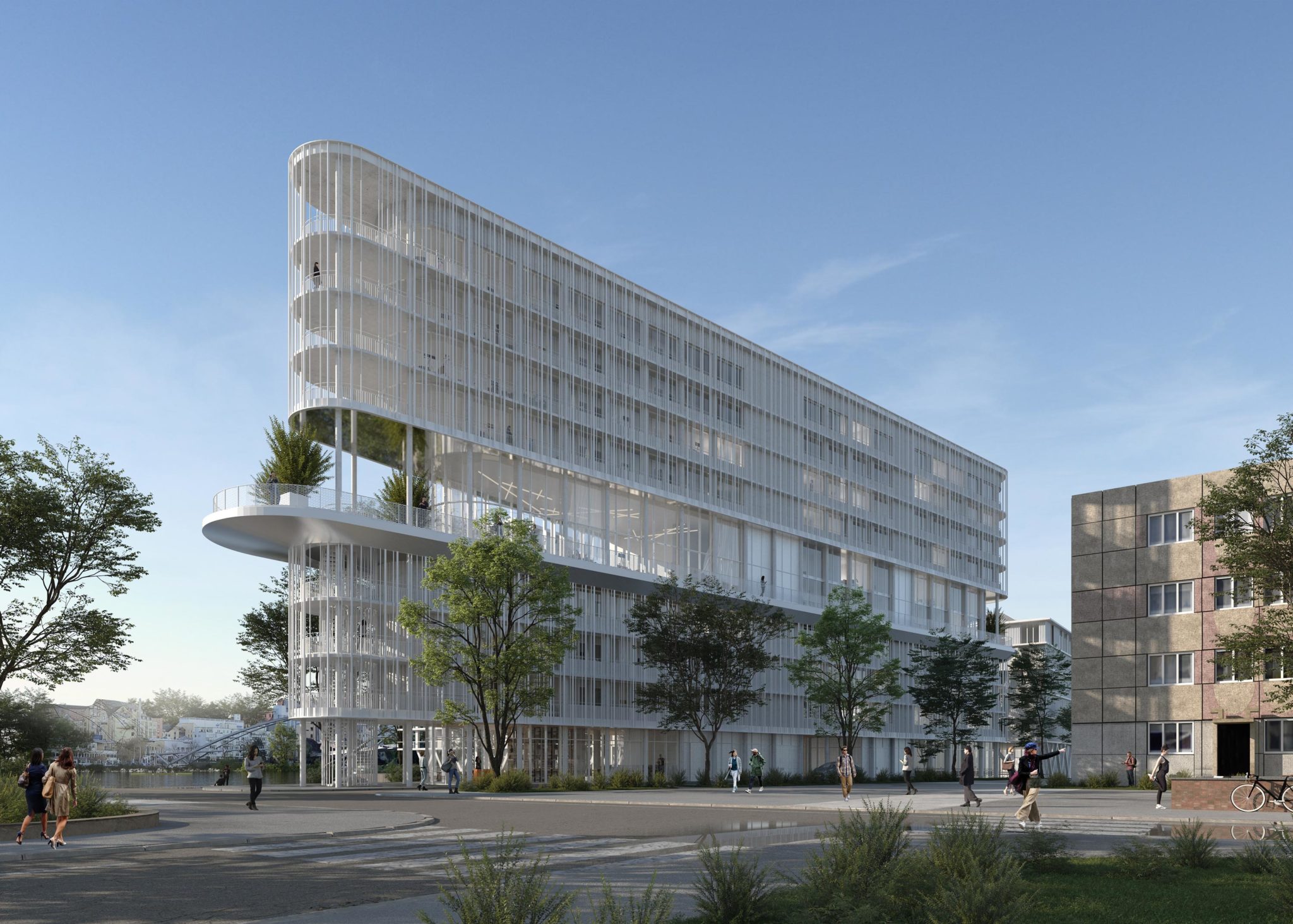 Tout en légèreté, l'immeuble de coliving sera la clé du rayonnement du nouveau quartier. La façade se dote d'une double peau, offrant des jardins d'hiver à l'ensemble des chambres.