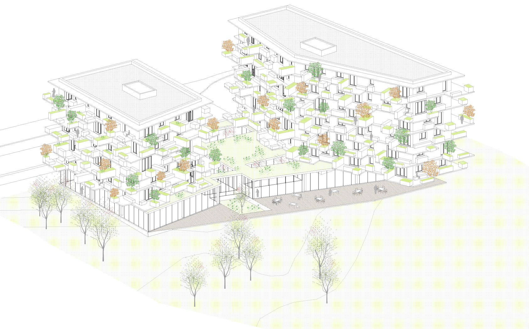 Chaque appartement est prolongé