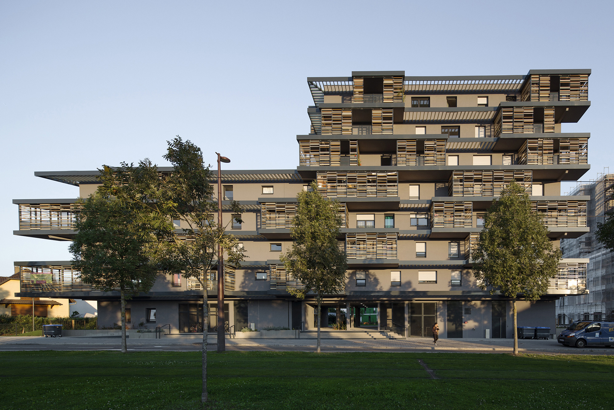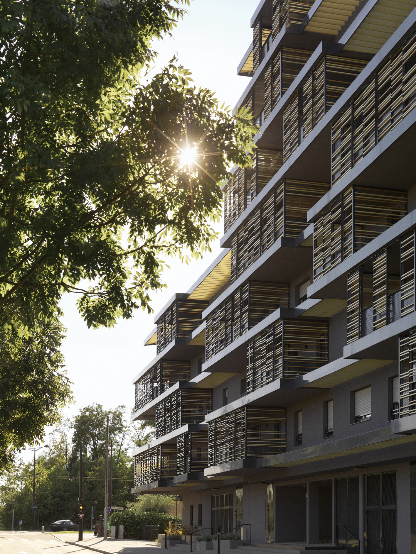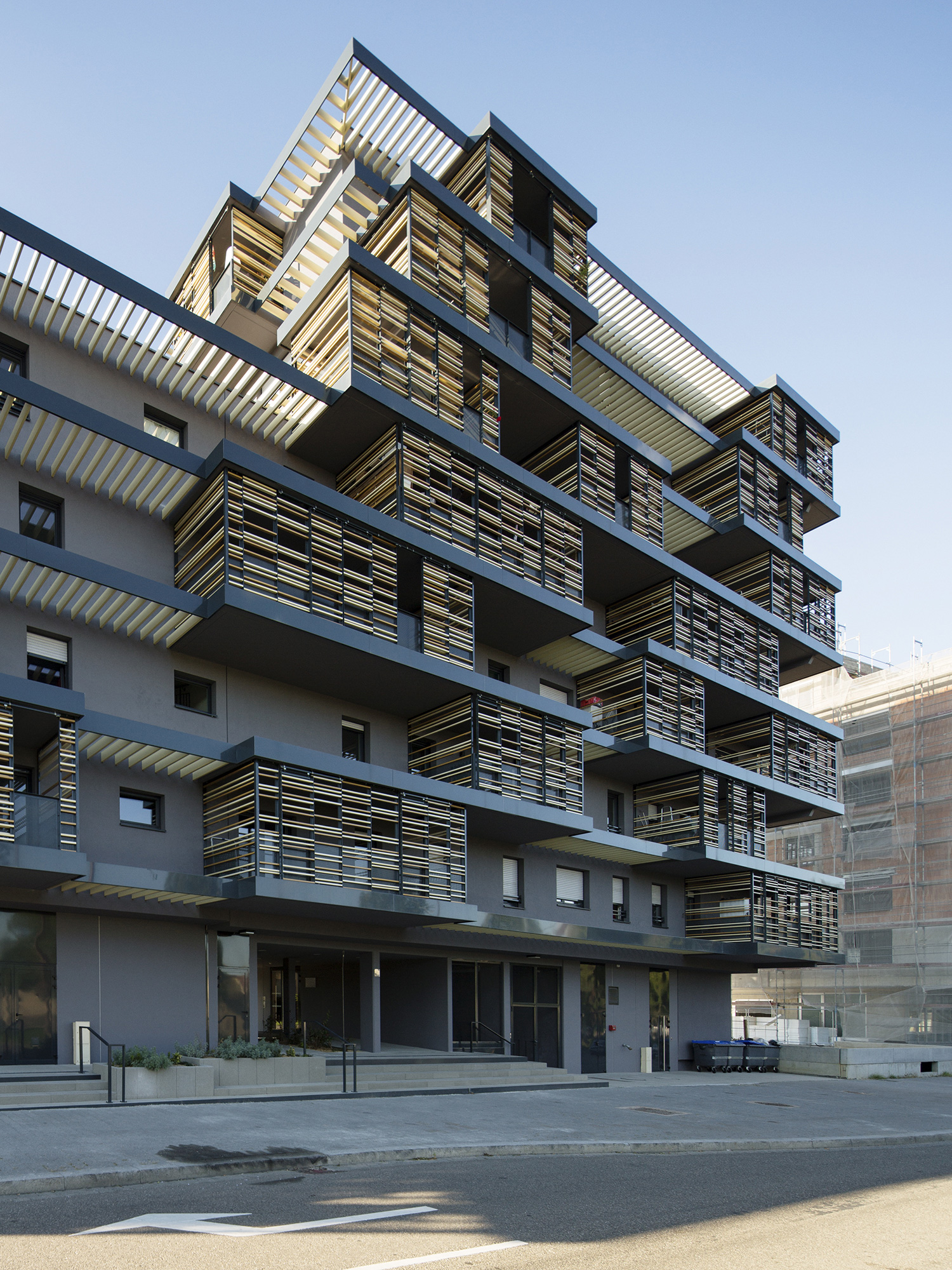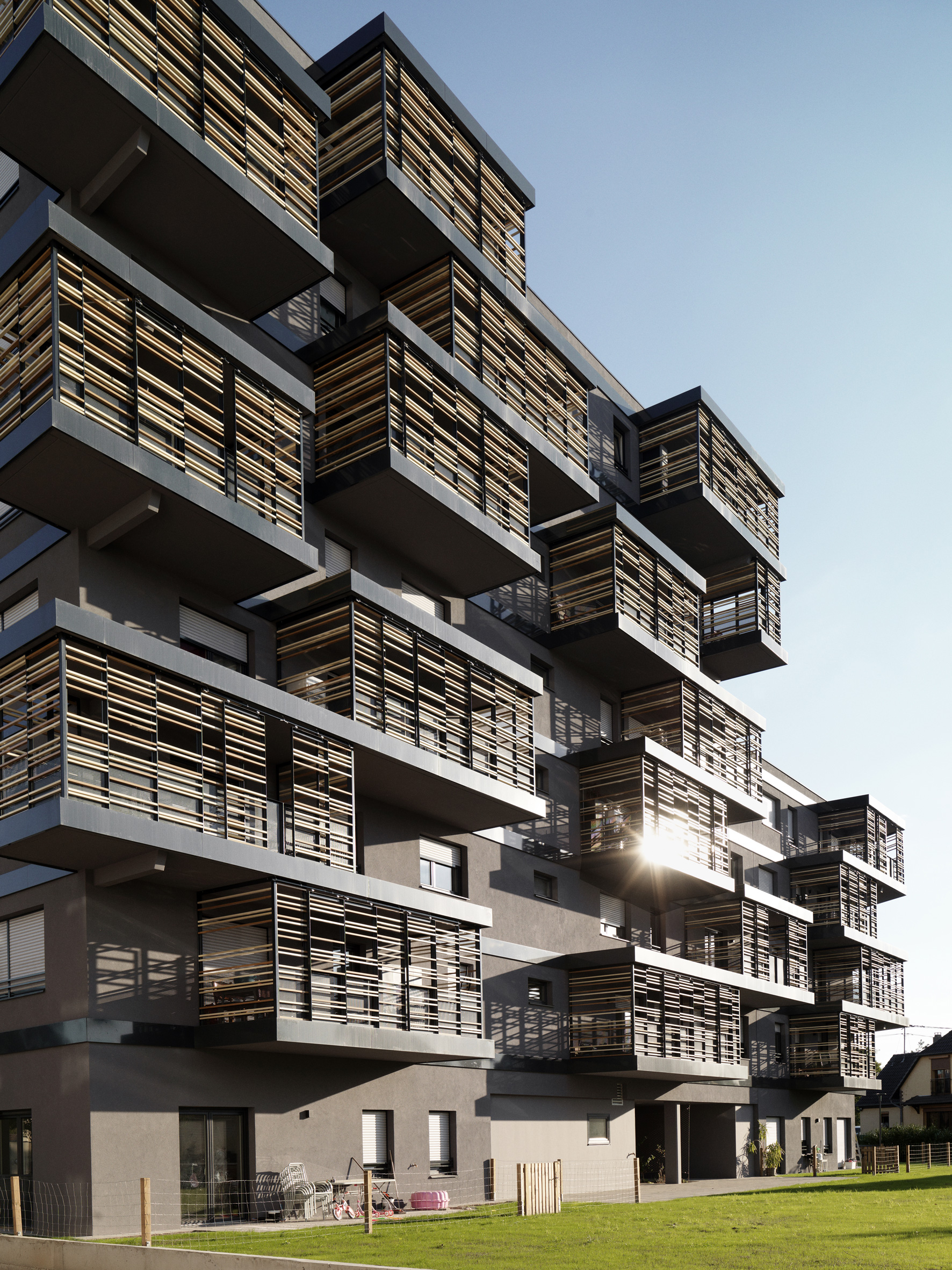 Ce bâtiment est situé à l’entrée du nouveau quartier des rives du Bohrie à Ostwald près de Strasbourg. Il abrite trente six logements qui profitent systématiquement d’une double orientation et d’espaces extérieurs généreux.