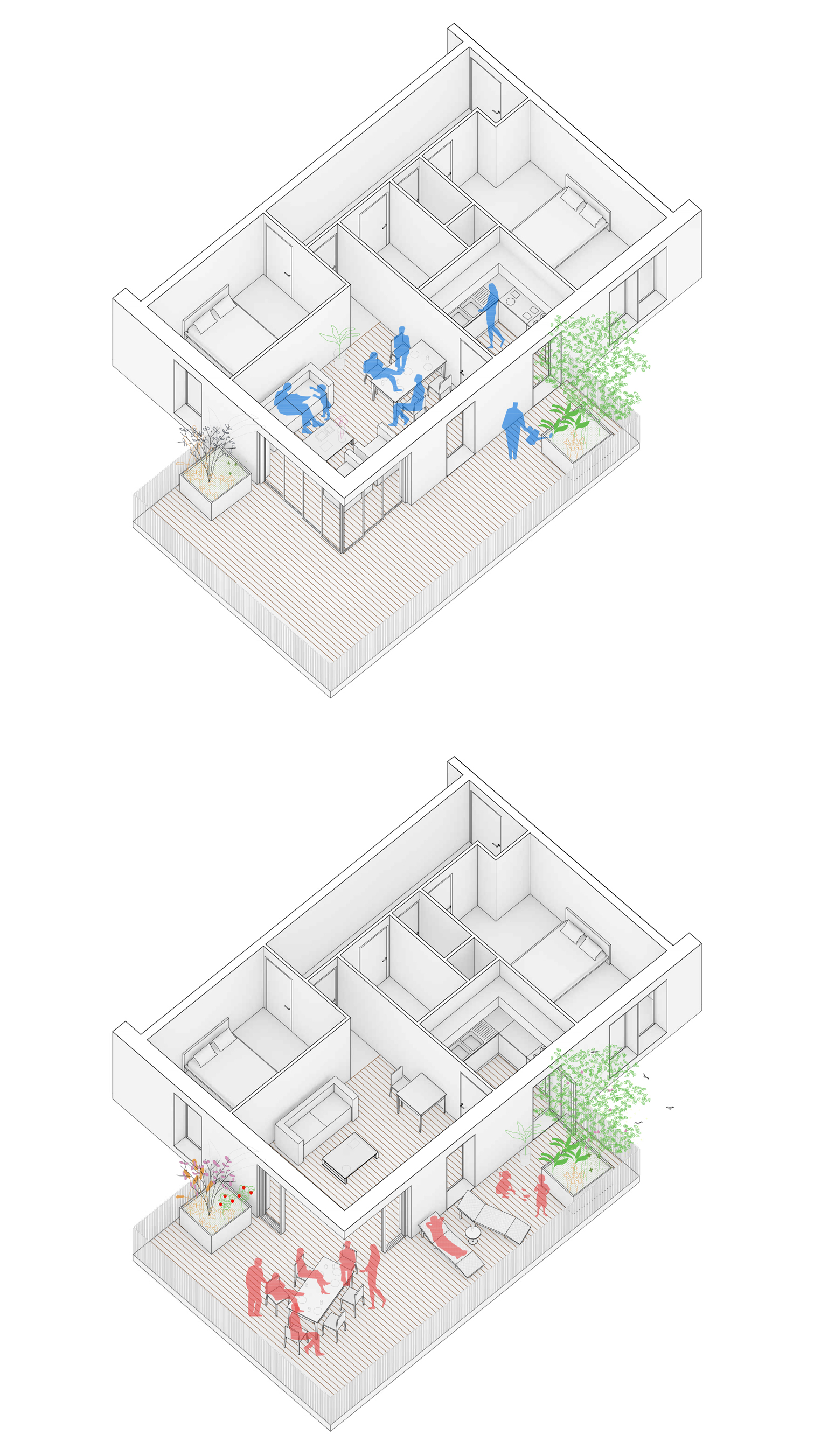 Les habitants pourront aussi se retrouver sur les toitures plantées et les terrasses communes pour profiter de l'extérieur.